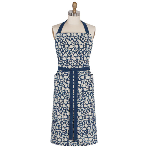 This Vinebloom apron includes two pockets, long ties and adjustable drawstring straps.Awash in indigo and punctuated with white, this timeless c...