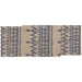 The Enigma collection features intricately detailed designs where ocean blue hand-stitching artistically contrasts with a neutral tan background, creating a mesmerizing pattern that both intrigues and soothes.