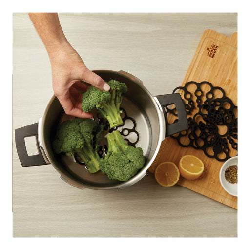 The Kuhn Rikon PanProtector Trivet Set/3 in black is a kitchen accessory designed to protect your cookware from scratches and damage while stacked ...