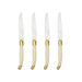 • A set of 4 Laguiole knives with ivory ABS handles and brass rivets, featuring smooth, highly polished 1.5mm blades