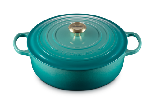 View full detailsLe Creuset 6.2L Shallow Round Dutch Oven - Bleu Riviera