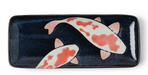 The Namako Koi 11.5" Rectangular Platter features graceful swimming koi in a rich namako blue glaze, bringing traditional Japanese artistry and elegance to your table. The vibrant design adds color and character, making it perfect for serving sushi, appetizers, or desserts. Both functional and decorative, this platter embodies the refined beauty of Japanese craftsmanship.