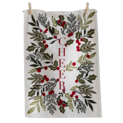 TAG Merry, Cheer or Joyful Sprig teatowel